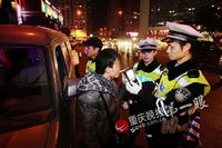 又訊 警方于18日晚開始,出動(dòng)2100余警力在各主要路口設(shè)置432個(gè)檢查站,對(duì)過往車輛進(jìn)行隨機(jī)抽查。截至昨日,全市共檢查12860人次,其中有39名醉駕司機(jī)在行動(dòng)中被查獲。 重慶晚報(bào)記者 涂靜 楊帆 攝影報(bào)道
