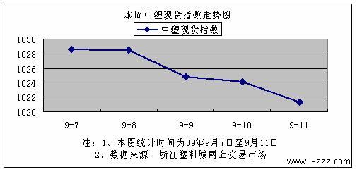 本周中國塑料城市場跌意甚濃,絲毫未見回暖跡象。周初石化生產企業迫于庫存壓力,大幅下調了掛牌價格,導致市場恐慌情緒滋生,商家低價走貨現象增多,行情跌勢加劇。而下游企業疲軟的需求也打擊了市場看多力量,成為拖累市場的原因之一。所幸周三原油期貨暴漲,為現貨市場帶來了一絲企穩的信心。不過,現貨市場成交狀況未見改善,估計行情積重難返,短期可能繼續向下整理。截止至本周末15時,中塑現貨指數報1021.39點,較上周末下跌11.01點。各品種具體情況如下: